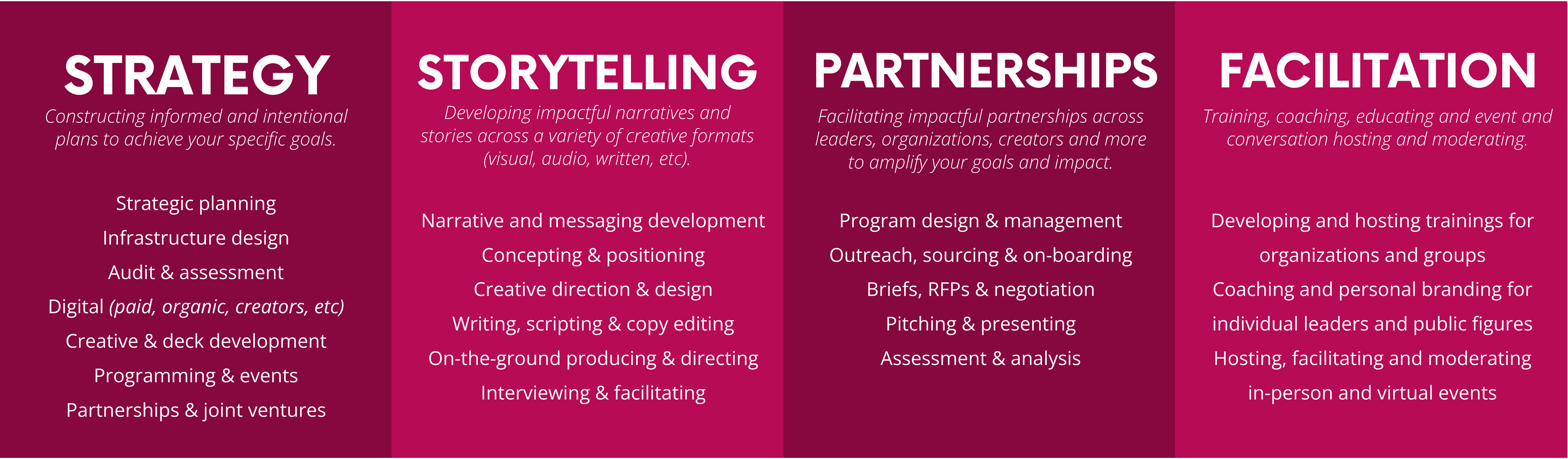If you are an organization or leader that could benefit from my support, please reach out and we can discuss and find a way to help you be more strategic in all that you do, maximize your resources and create a greater impact.